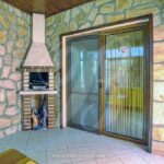 Man betritt eine große Veranda mit Steingrill und Holzmöbeln. Vor dem Haus gibt es einen gepflasterten Bereich und einen Pavillon. Schöner Garten mit großer Auffahrt, viel Platz zum Parken. Es gibt einen Abstellraum auf der Rückseite des Hauses.